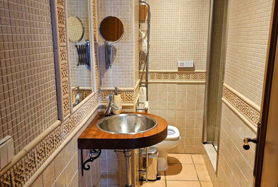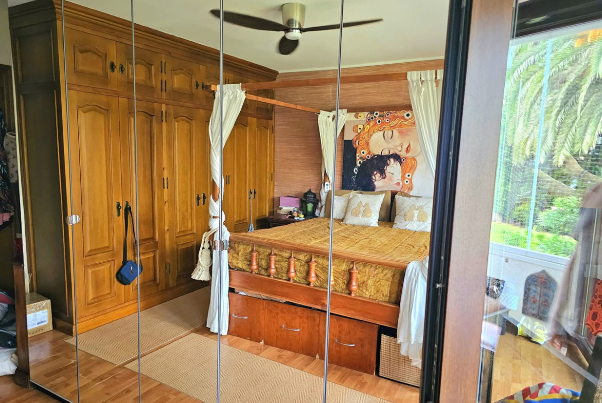 Felles bassengene, en stor en mindre for barn har havutsikt også. Det er også en tennisbane i felles hageområde og parkering er inne i urbanisacion på utendørs parkeringsplass.