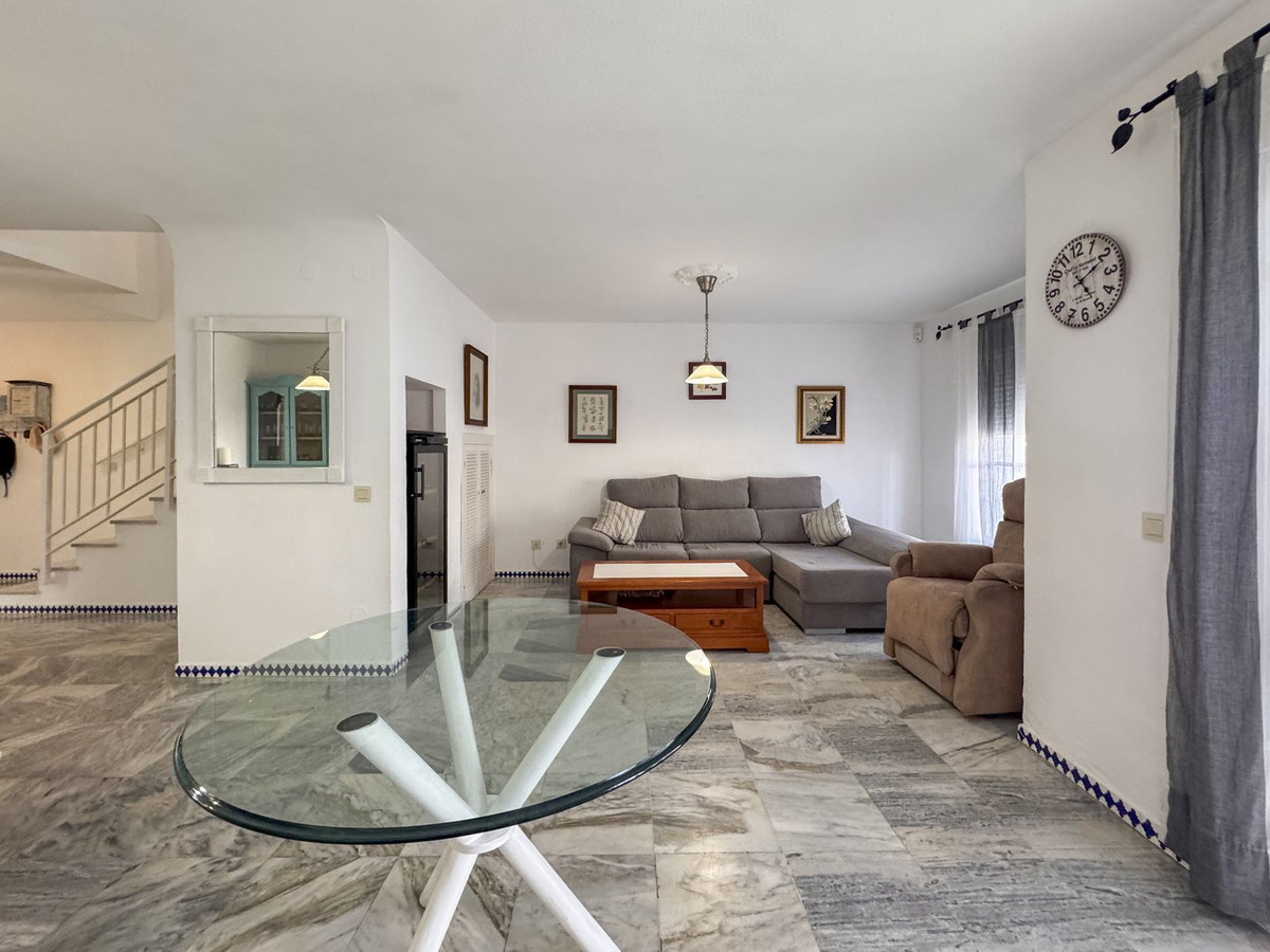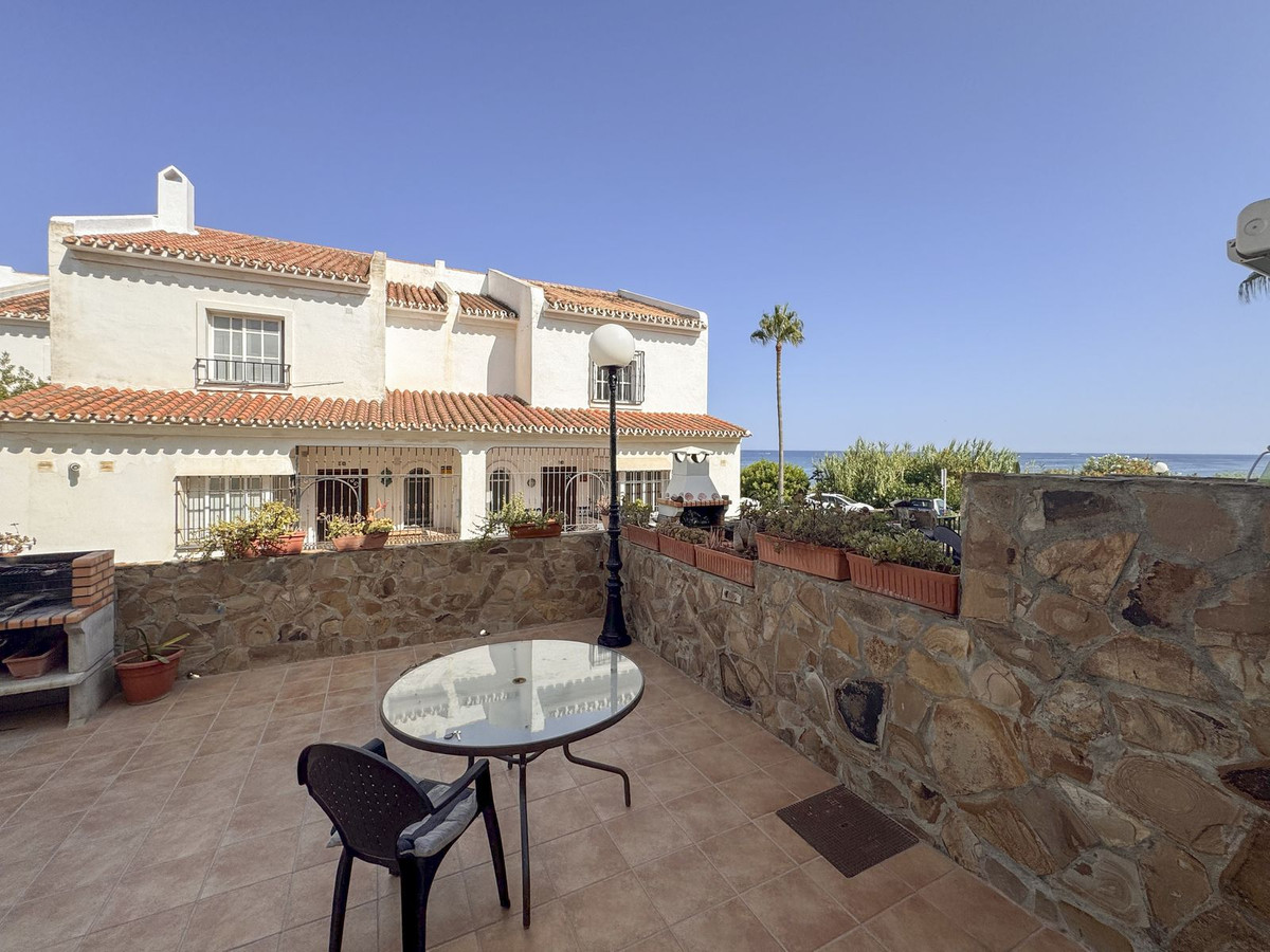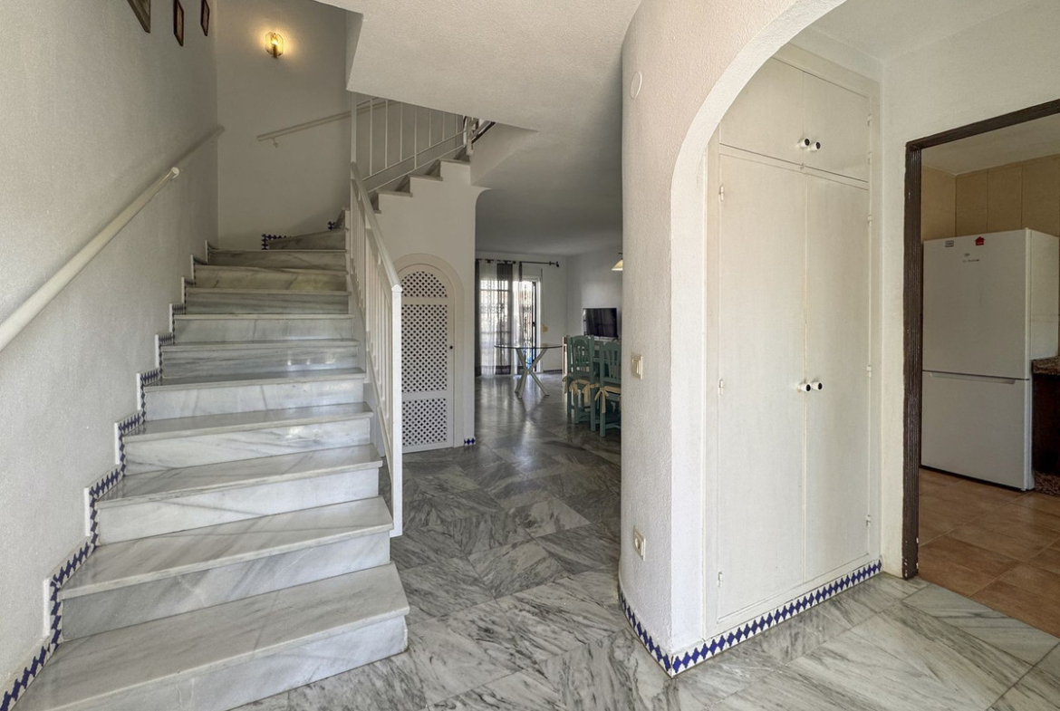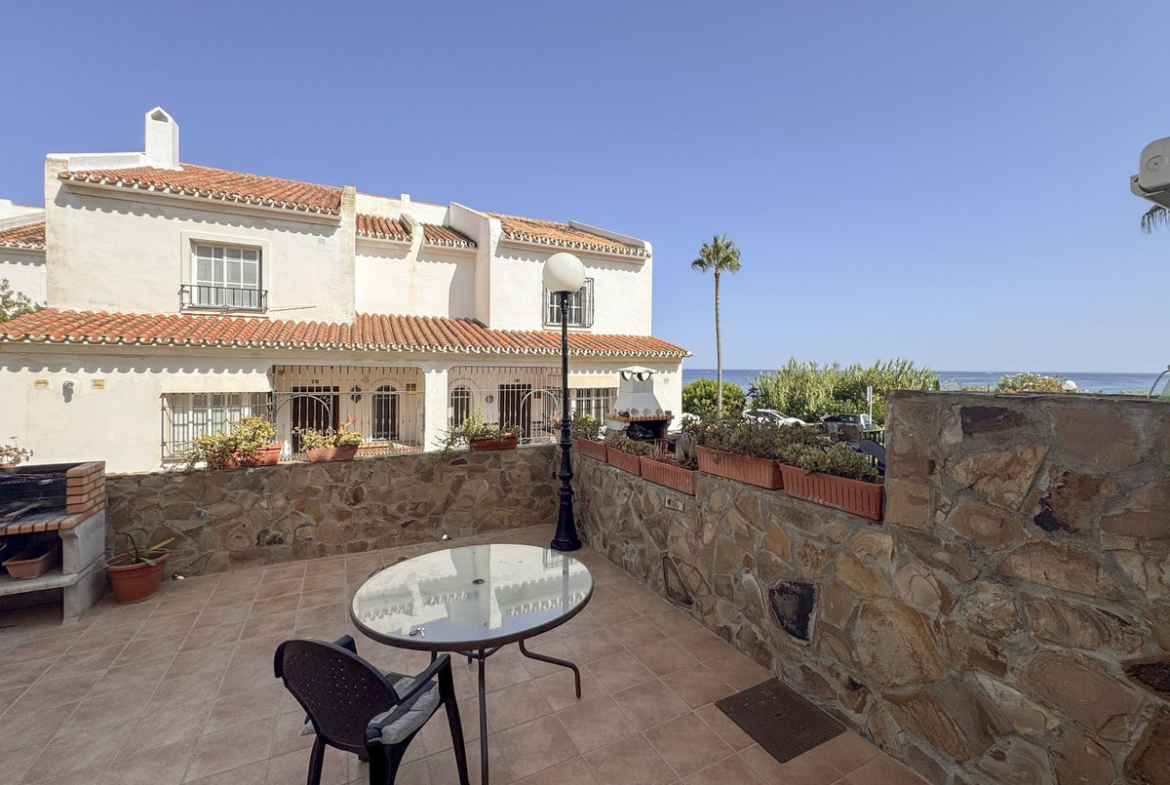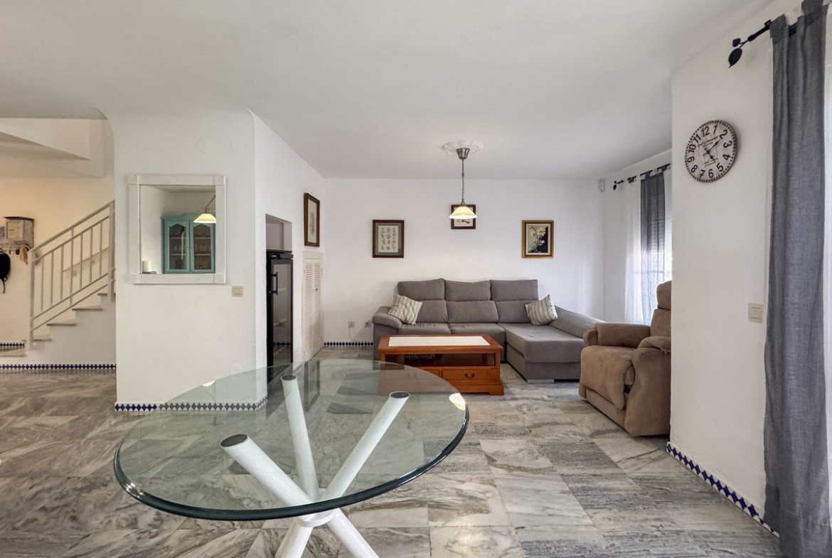 Dette sjarmerende rekkehuset, som ligger i det ettertraktede strandkomplekset Aldea Beach i Manilva, har en uslåelig beliggenhet bare noen skritt fra sjøen. Urbaniseringen er perfekt forbundet med promenaden, og tilbyr direkte tilgang til Puerto de la Duquesa og sentrum av Sabinillas.