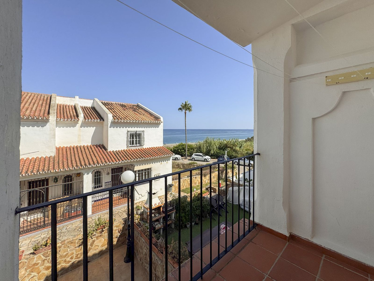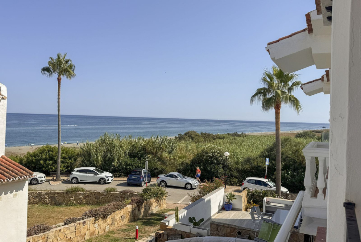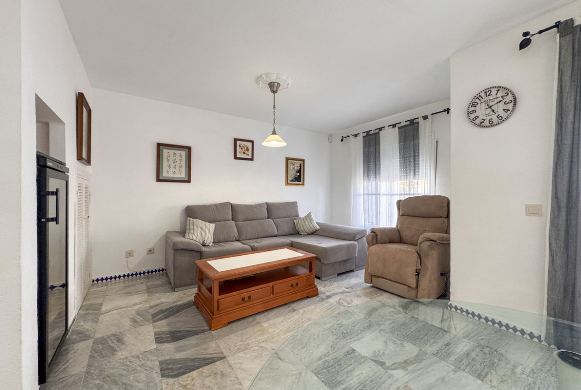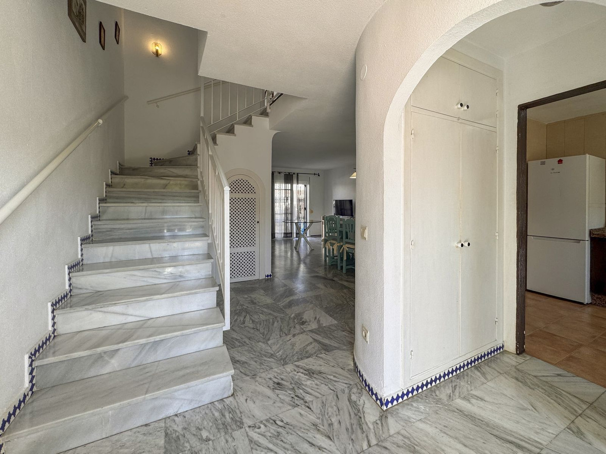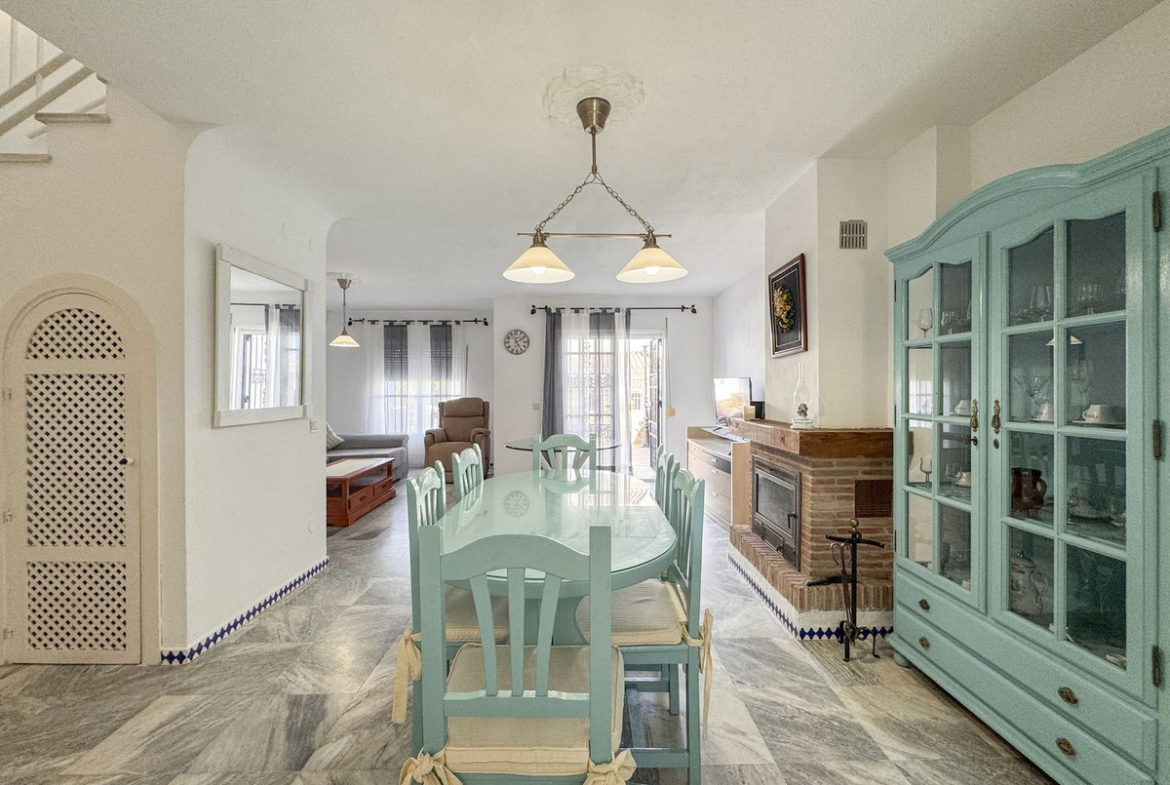 Dette sjarmerende rekkehuset, som ligger i det ettertraktede strandkomplekset Aldea Beach i Manilva, har en uslåelig beliggenhet bare noen skritt fra sjøen. Urbaniseringen er perfekt forbundet med promenaden, og tilbyr direkte tilgang til Puerto de la Duquesa og sentrum av Sabinillas.
