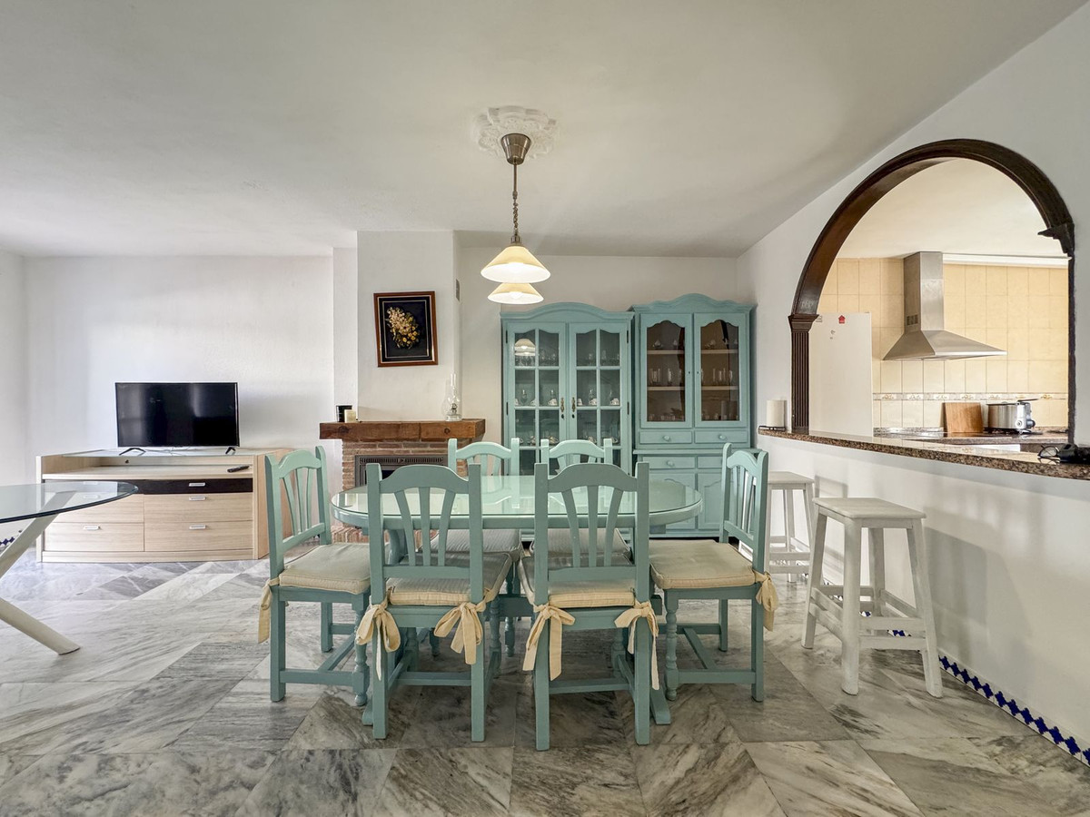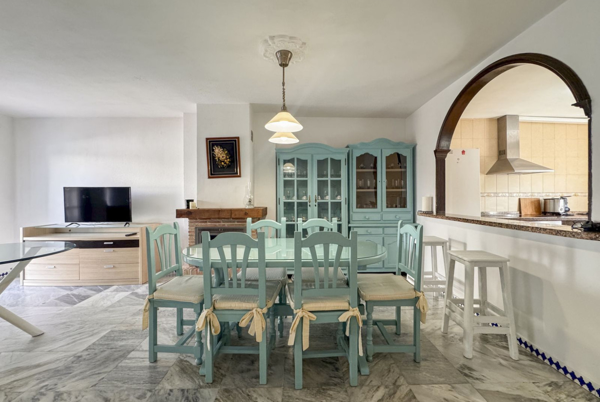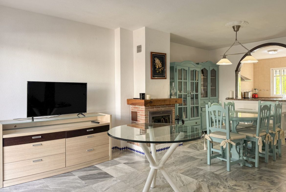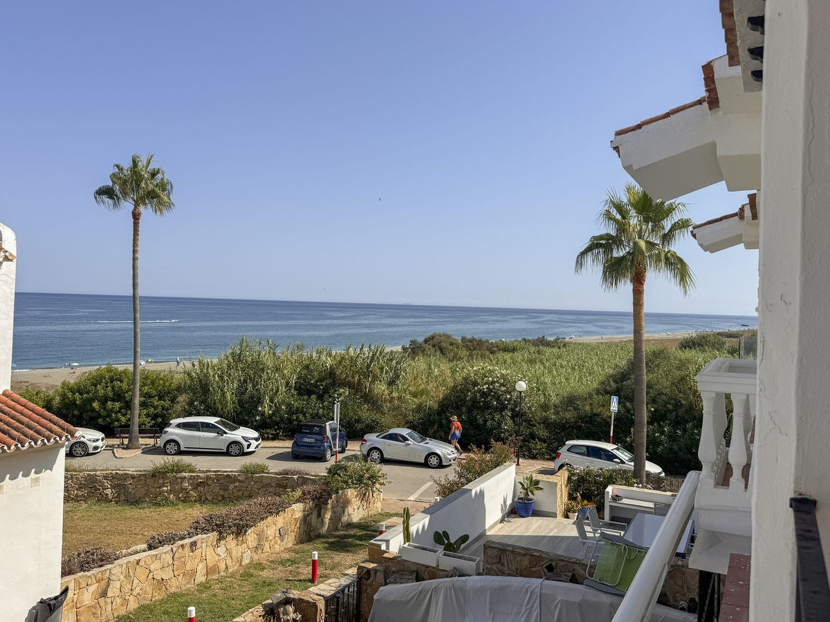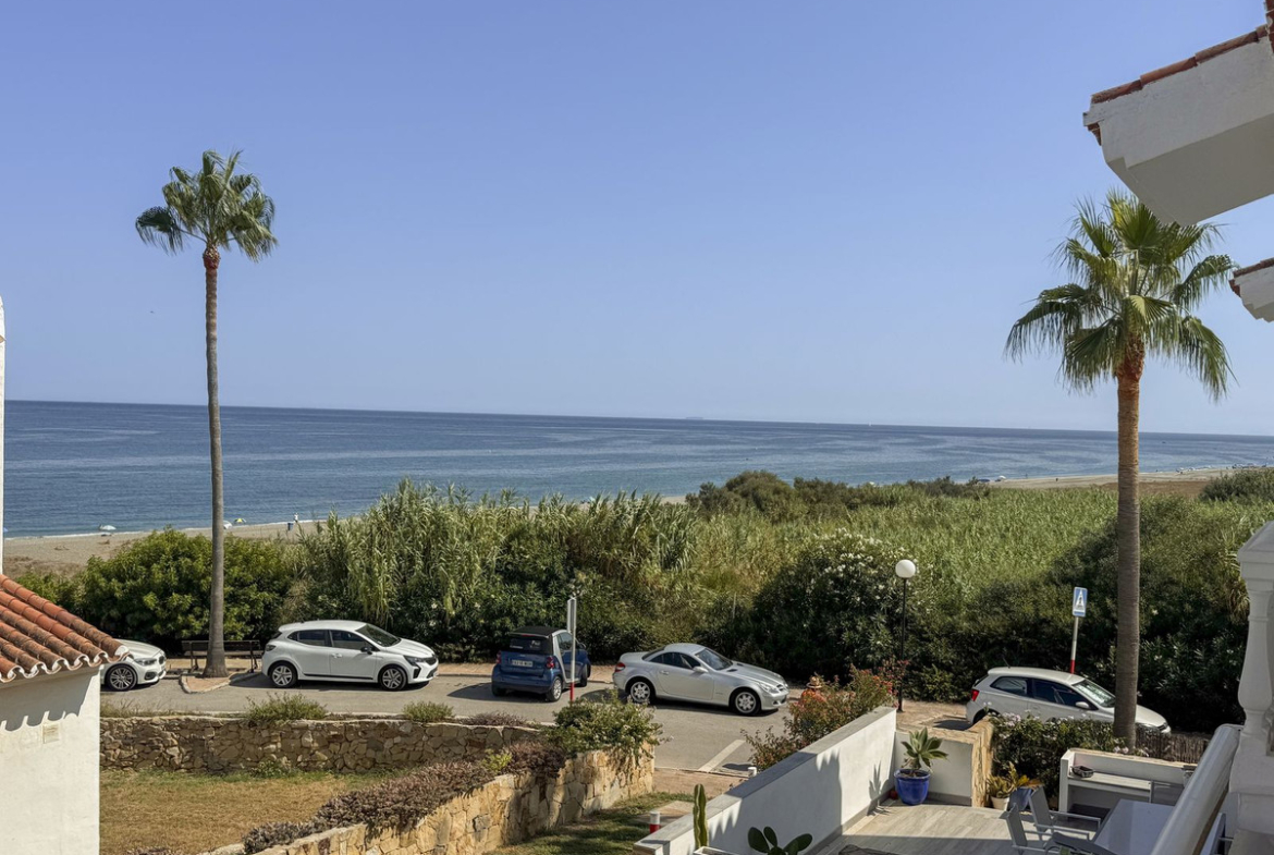 Dette sjarmerende rekkehuset, som ligger i det ettertraktede strandkomplekset Aldea Beach i Manilva, har en uslåelig beliggenhet bare noen skritt fra sjøen. Urbaniseringen er perfekt forbundet med promenaden, og tilbyr direkte tilgang til Puerto de la Duquesa og sentrum av Sabinillas.