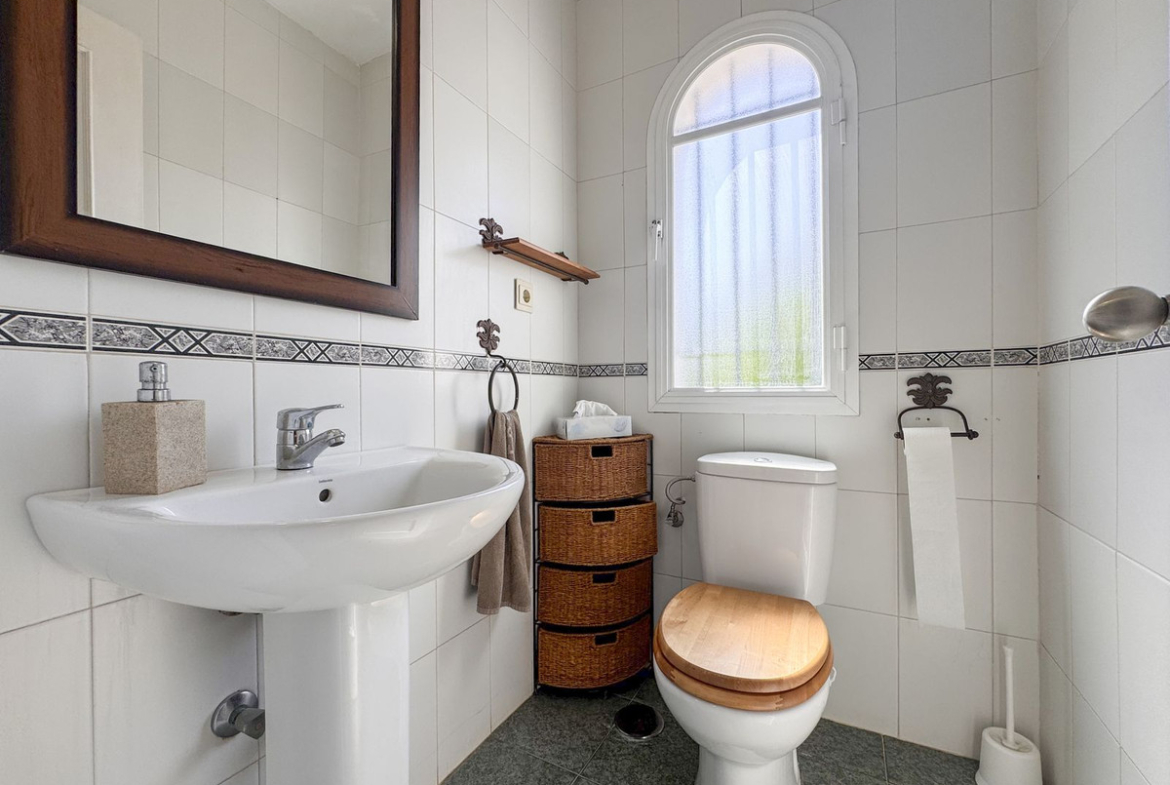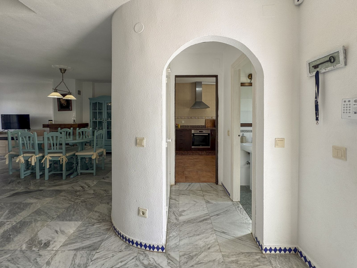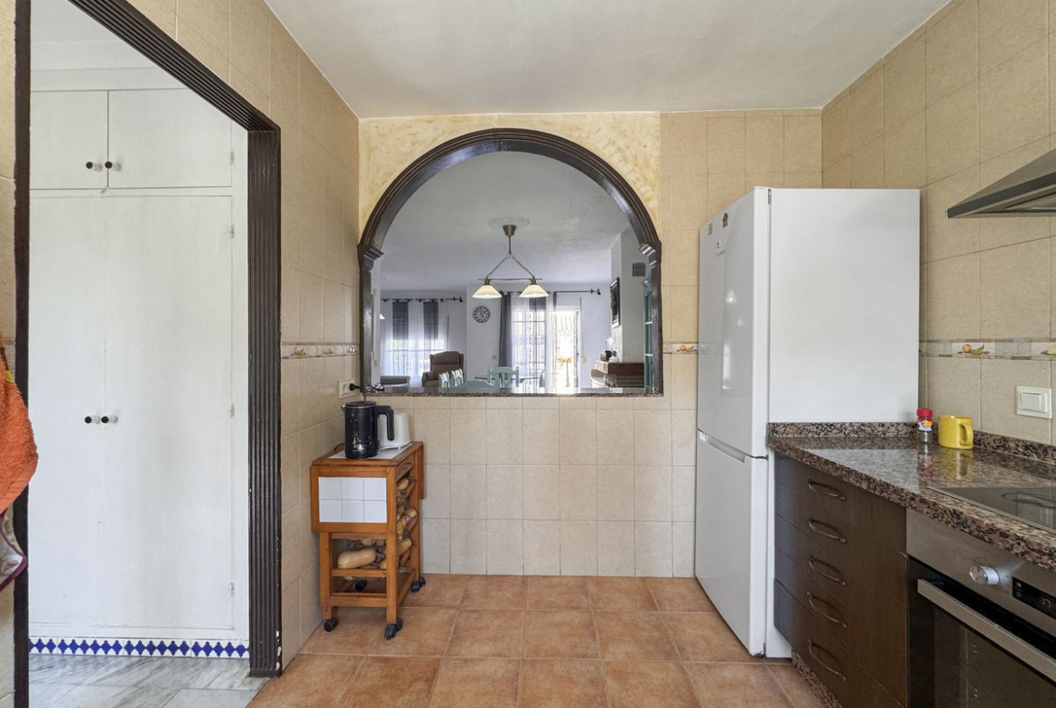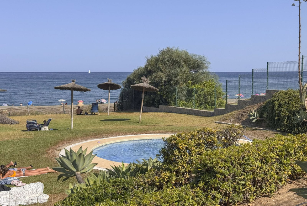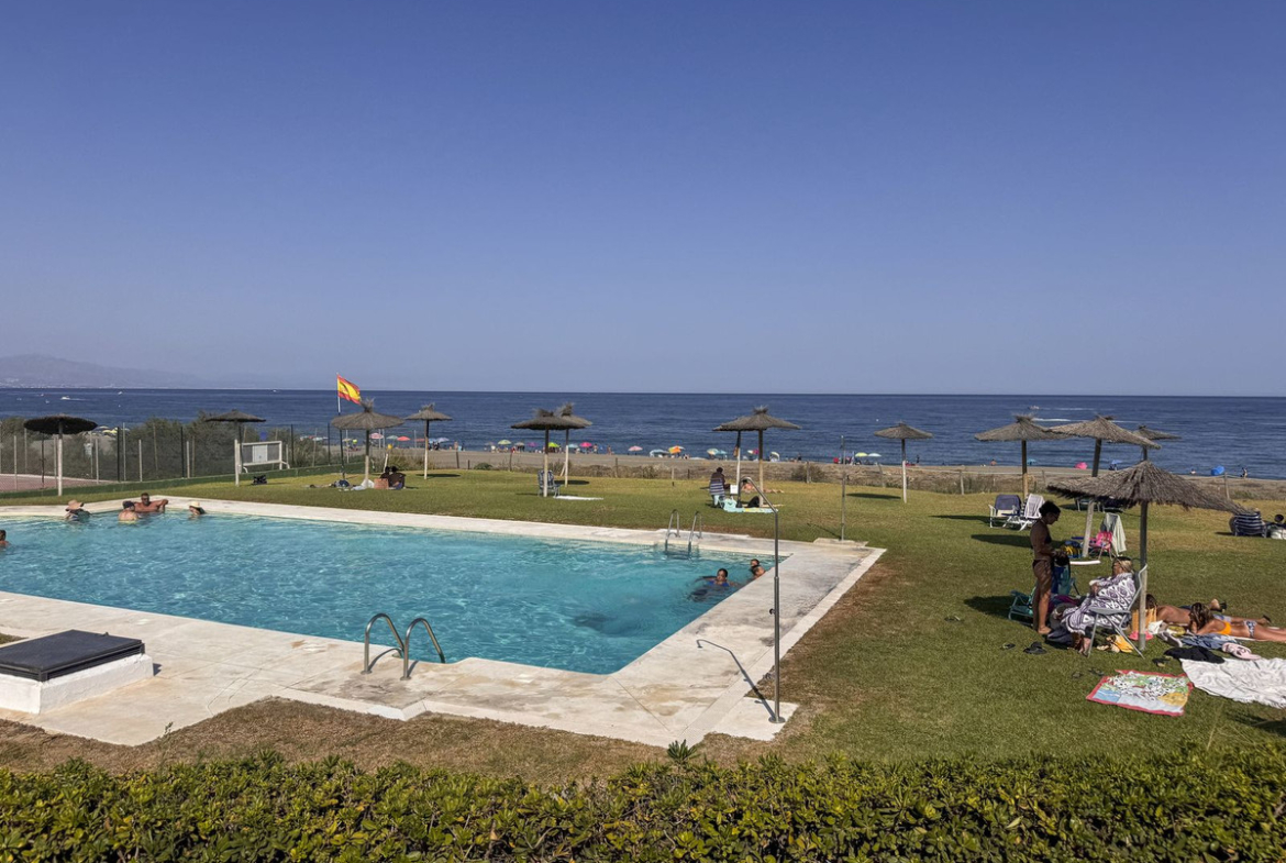Dette sjarmerende rekkehuset, som ligger i det ettertraktede strandkomplekset Aldea Beach i Manilva, har en uslåelig beliggenhet bare noen skritt fra sjøen. Urbaniseringen er perfekt forbundet med promenaden, og tilbyr direkte tilgang til Puerto de la Duquesa og sentrum av Sabinillas.