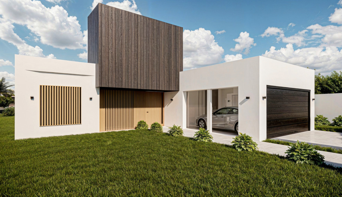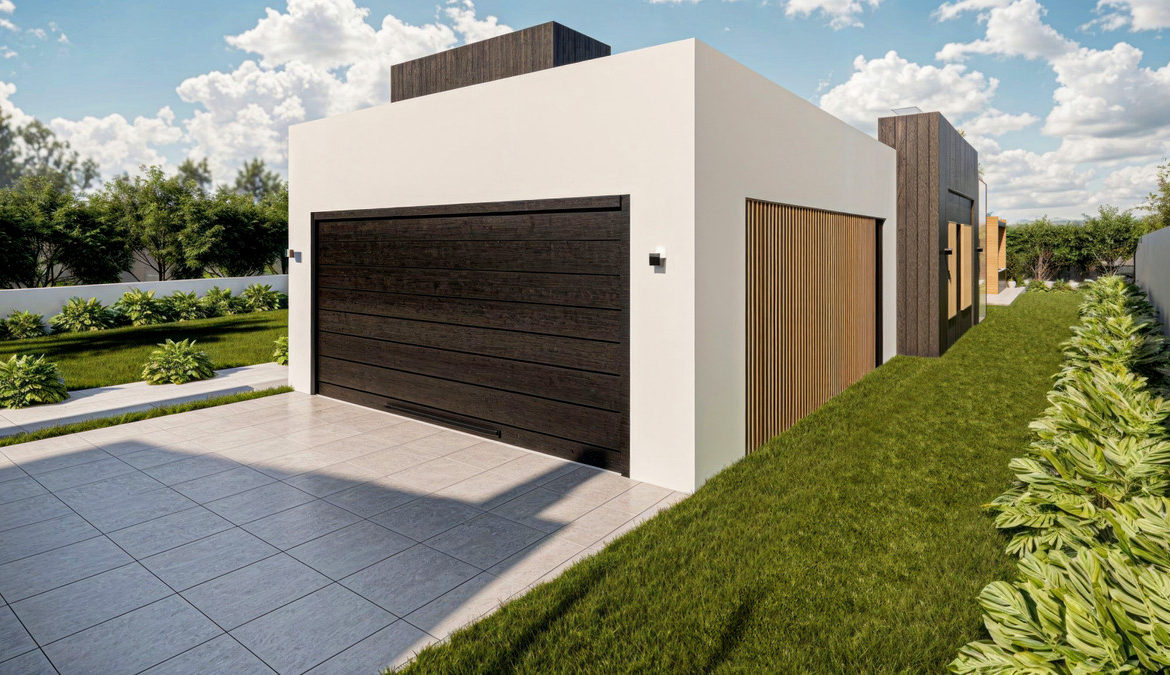 • Prywatny garaż na dwa pojazdy – z bezpośrednim dostępem do domu oraz dodatkowym parkingiem na działce dla dwóch kolejnych samochodów. Zawiera pomieszczenie o powierzchni 6 m2, z możliwością przekształcenia go w dodatkową przestrzeń życiową