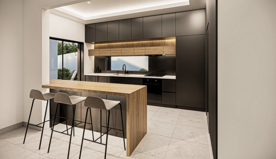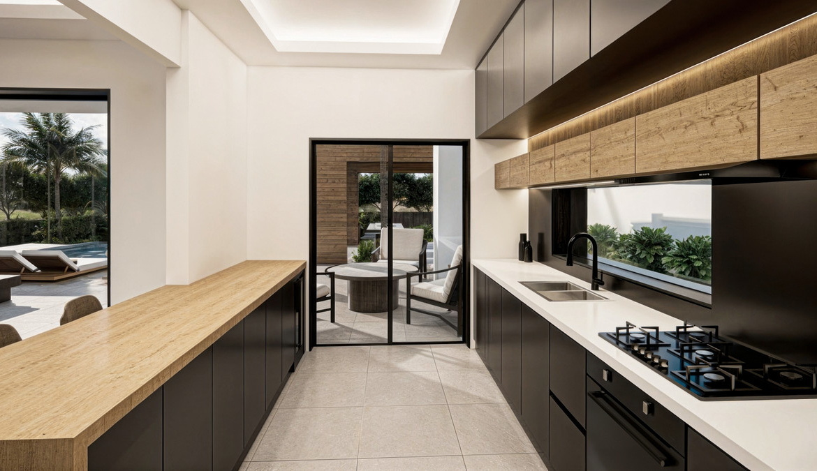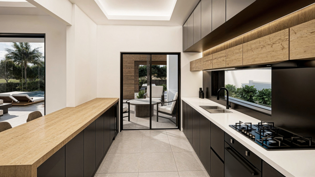 • Nowoczesna kuchnia wysokiej klasy – wyposażona w urządzenia klasy premium i ukrytą spiżarnię