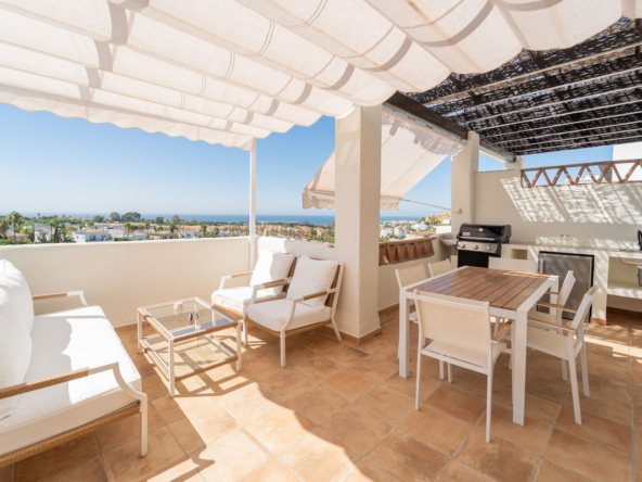 Outdoor Paradise: Expansive 50m² terrace perfect for al fresco dining, entertaining, and barbecues, plus a private garden for peaceful relaxation with stunning views of the urbanization and beach.