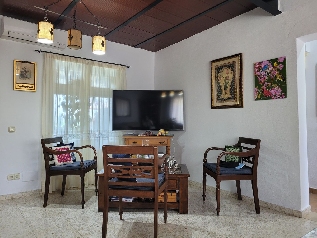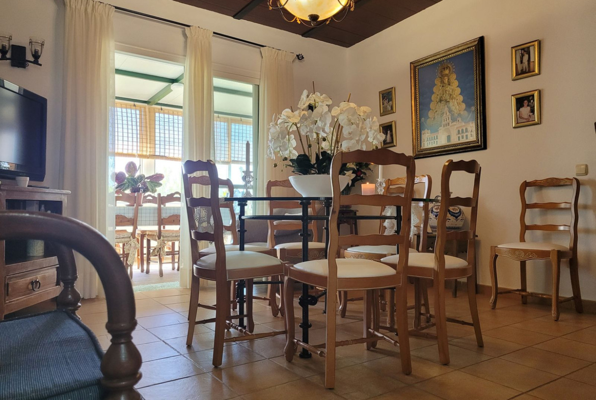 Villa of 1000 square meters, consists of two houses: the main house has four bedrooms and two bathrooms, private pool and garden, two porches, one closed with kitchen, barbecue area, appliances and living room.