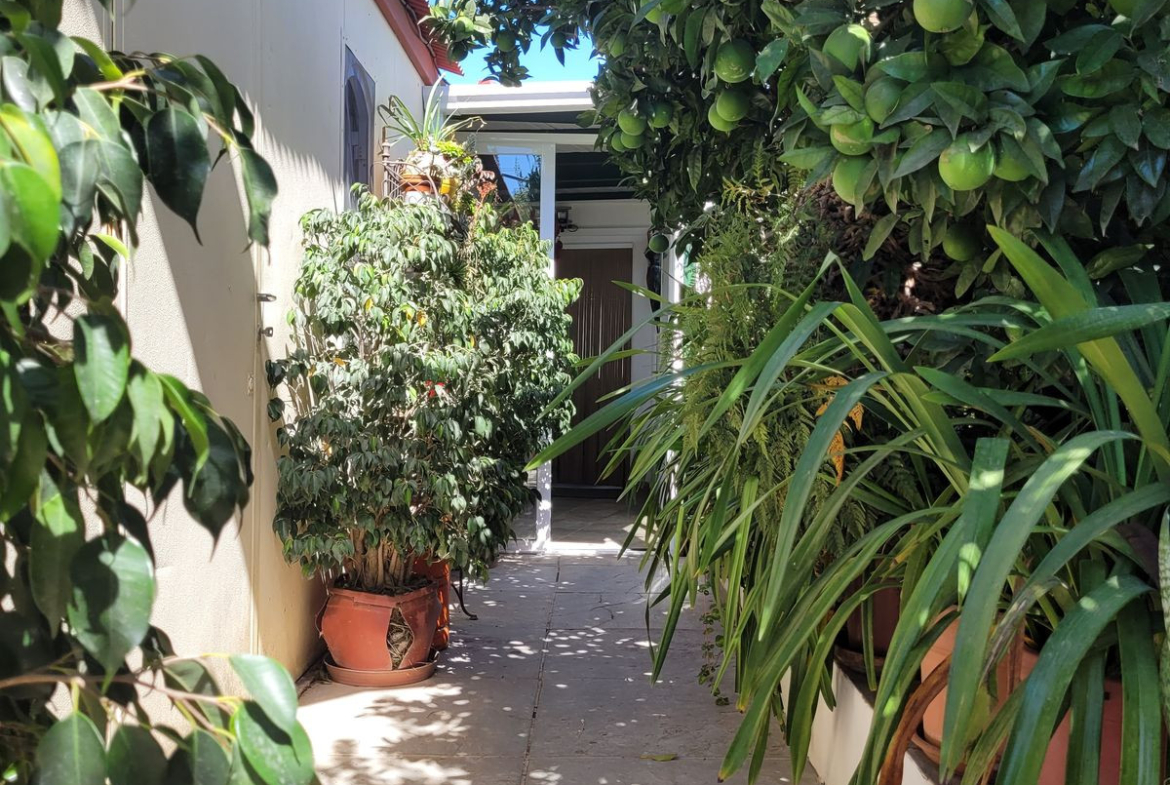 Fruit trees, water and electricity. This house was formerly a large garage.