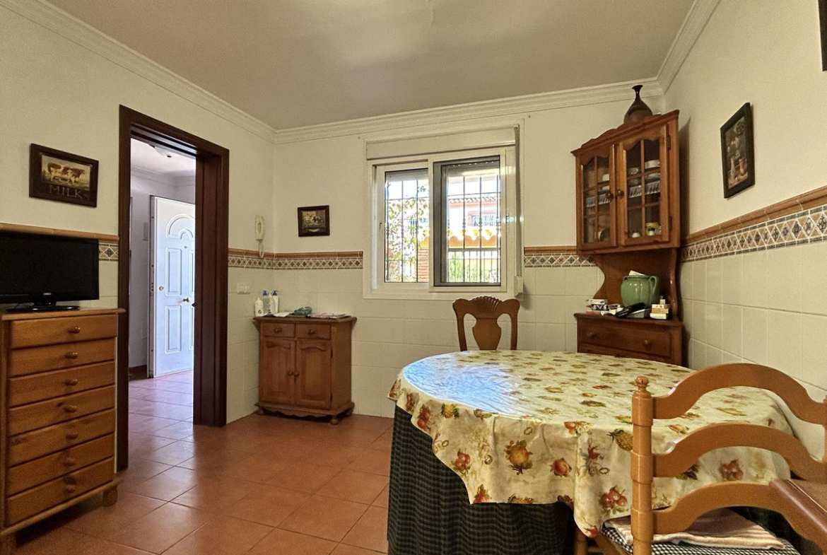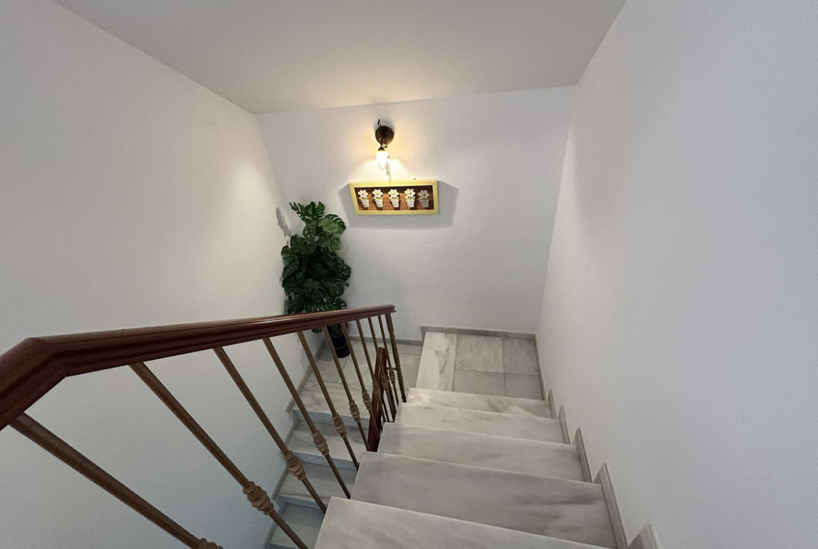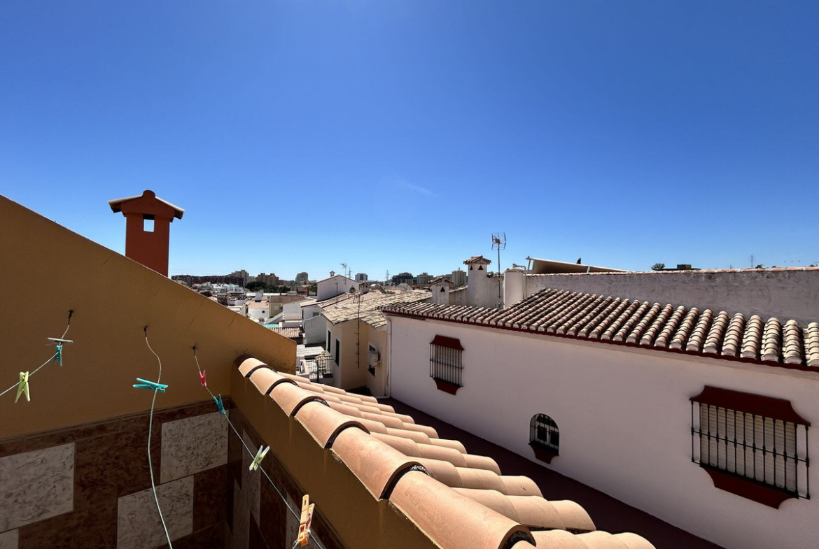 A spacious semi-detached house for sale located in the central area of Los Pacos, Fuengirola. The property has 4 bedrooms, 2 terraces, 3 bathrooms, a guest toilet, an entrance porch, an interior patio, and a private parking space.