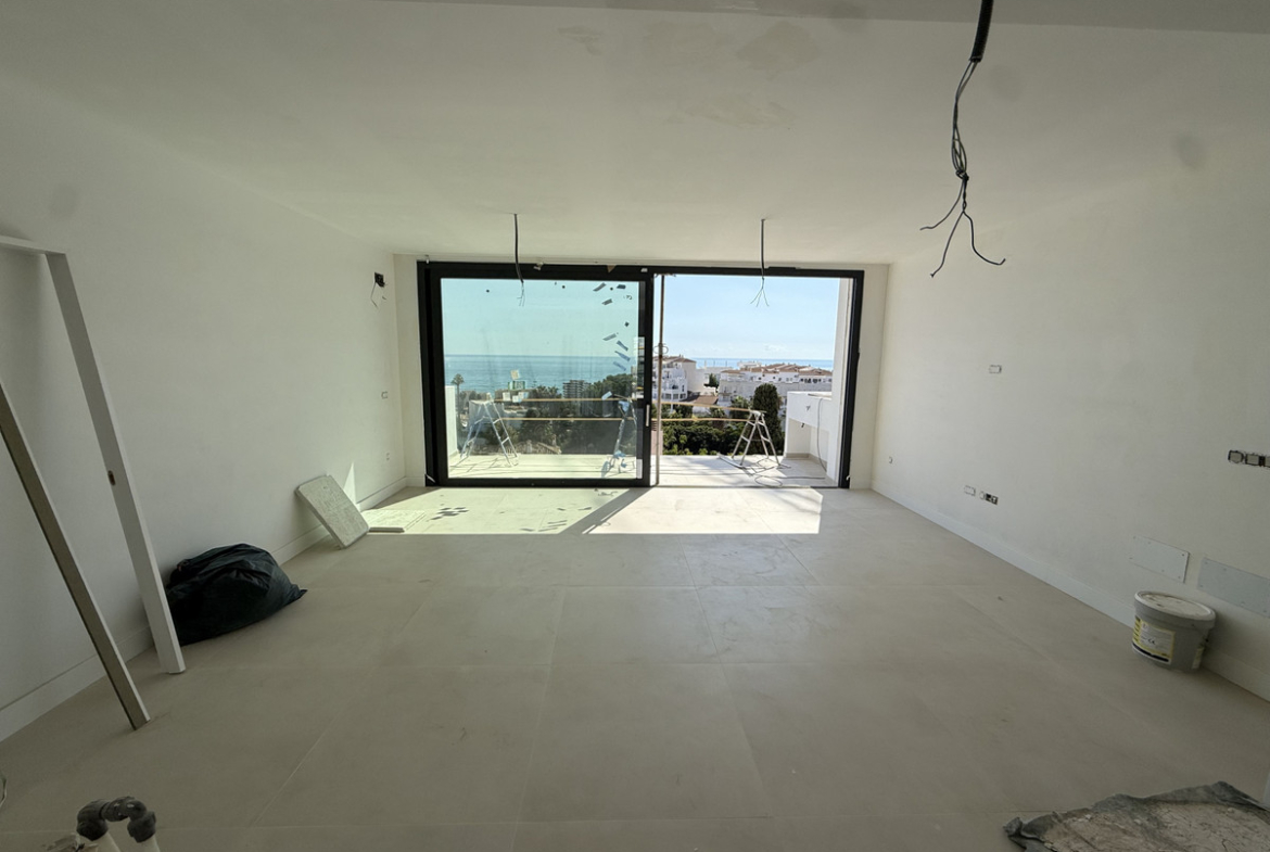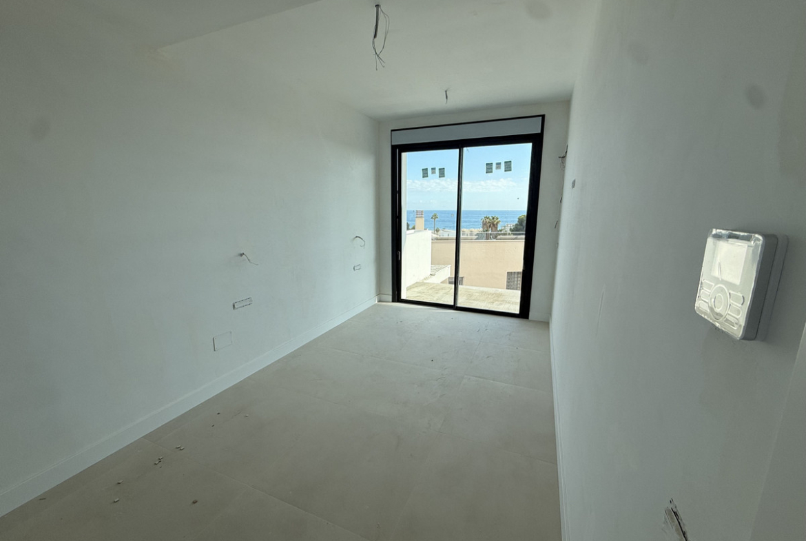 There are under construction four semi detach-style villas, of which only one is for sale. This elegant villa has three bedrooms, three bathrooms (two of which are en-suite and a separate toilet with underfloor heating), a spacious American kitchen, a dining area and a large living room. The house is on three levels and has wonderful sea views from all floors. Construction is well underway and is expected to be completed by the end of 2025.