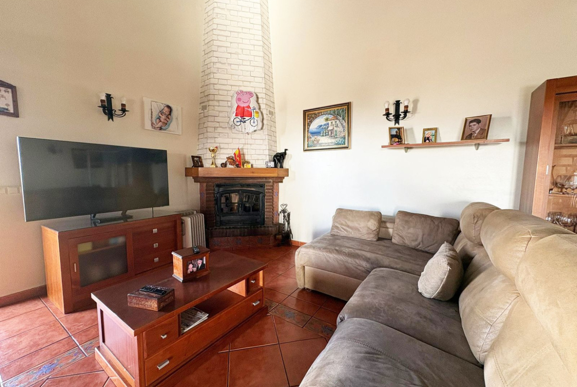 Outside, the property boasts expansive terraced areas, perfect for outdoor dining, entertaining, or simply soaking in the views. It also includes a private swimming pool and a generous plot of land, ideal for gardening or enjoying the serene surroundings.