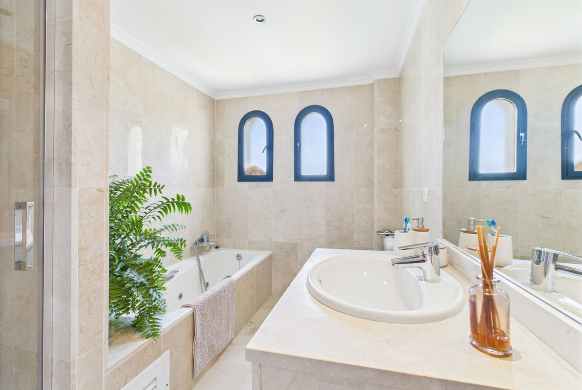 Sitting proudly on a generous 500m² plot, this lovingly maintained villa is sold fully furnished and ready for you to move straight in. The home offers three bright and airy bedrooms, all with ample storage and natural light, and four stylish bathrooms, each with windows that bathe the space in daylight and offer a refreshing, open feel. The living room is both cosy and elegant, featuring a charming fireplace that creates a welcoming atmosphere year-round, perfect for both entertaining guests and quiet evenings at home.