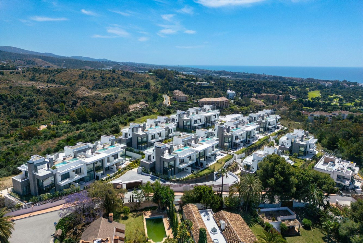 A community of 27 opulent semidetached homes with expansive rooms, private gardens, swimming pools, and prime sea views can be found in Marbella at this residential. Because to its multi-level construction, you can take in the breathtaking views of the Mediterranean.