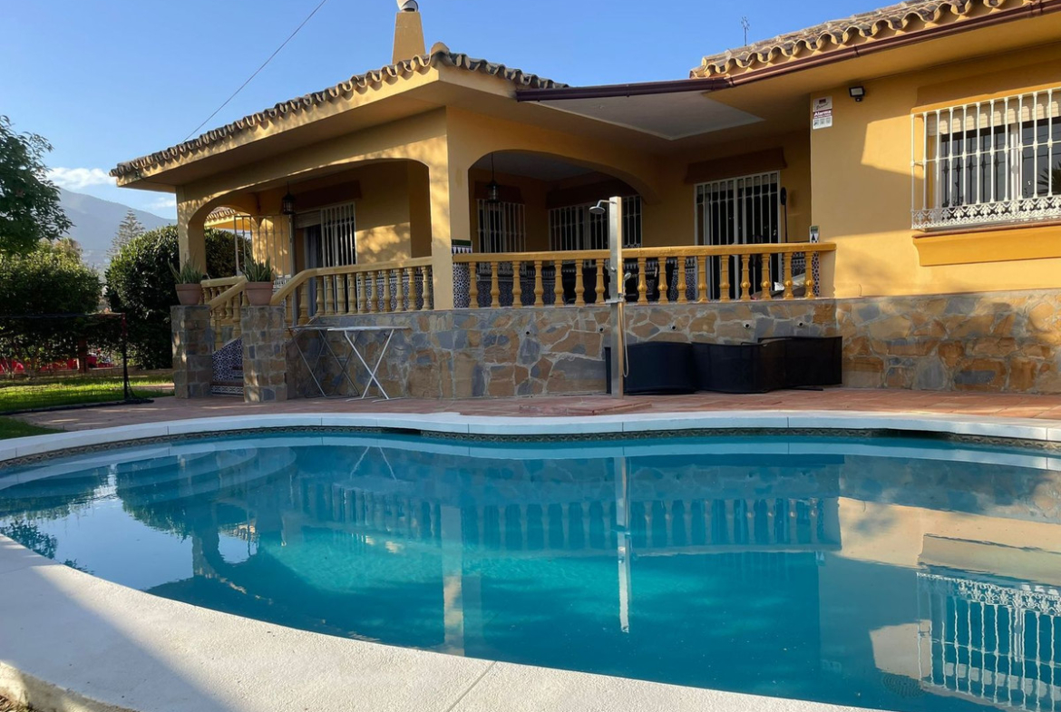 "Discover your dream home in Mijas! This impressive single-story villa is perfect for families seeking comfort and space. With 4 spacious bedrooms and 3 bathrooms, every corner of this property has been designed to offer comfort. The garden and pool are ideal for enjoying the Mediterranean climate, while the 809 m² plot offers endless possibilities to create your own oasis. It also has a large 64 sqm basement for use as a garage and storage or gym.The home built in 1992 is in good condition.