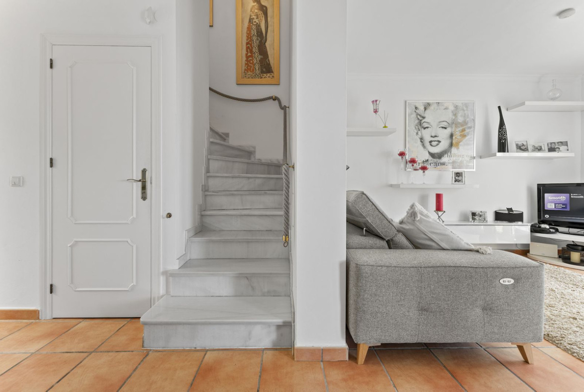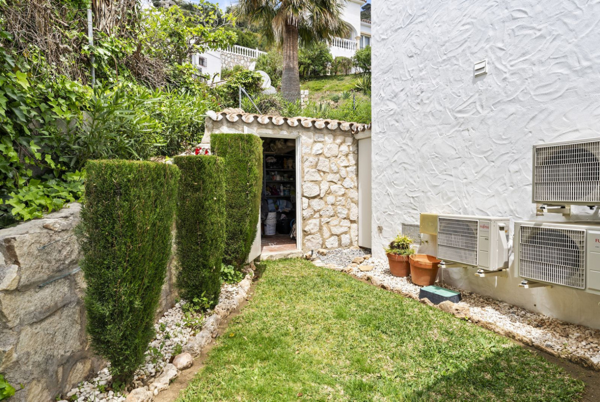 Let's start with the location:This semi-detached house is located a few hundred meters from the beloved Mijas Pueblo in a well kept urbanization with only 17 houses. The house is on the west-end of the urbanization, enjoying the best sunlight and views. So we can check off the location from the list.